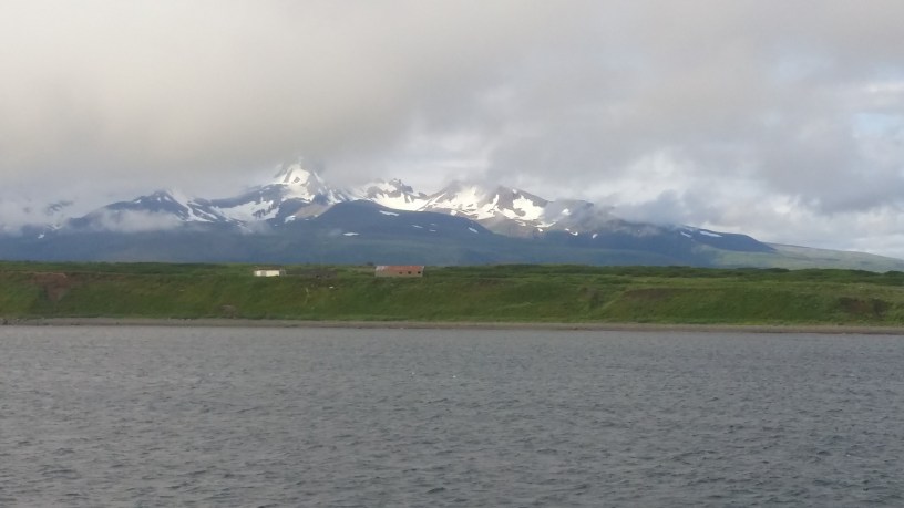 (photo is looking down at False Pass – across the channel is the end of the Alaska Penninsula)