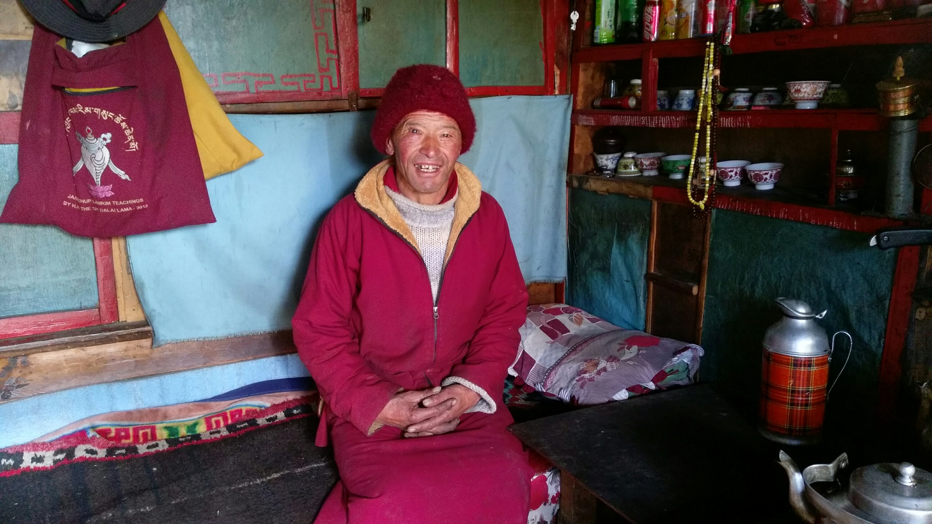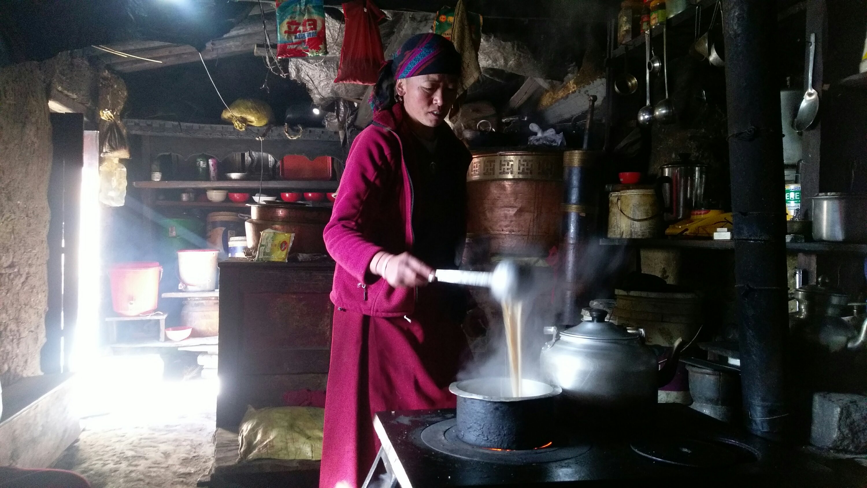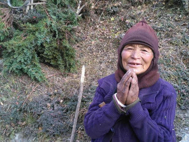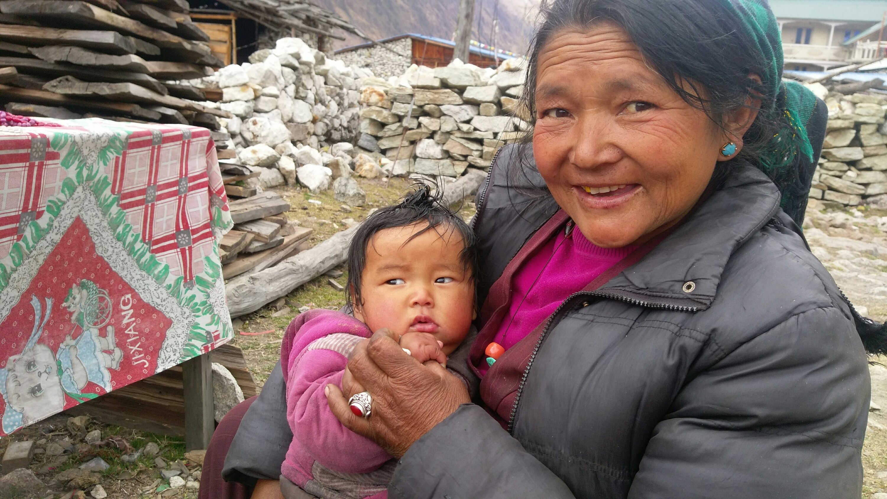 This woman is almost 80! We ran across her on the trail, she had gotten something in her eye and asked for help. I put some eye drops in and that seemed to help! She was full of spunk and laughter. The basket she was carrying was at least half her size!I bought a necklace from this woman. She and her baby have a small table stand on the trail. I was able to converse with her using my 3 basic sentences. “How old are you?”, “Are you married?”, “Do you have children?”, “How many?”. It felt good supporting her.This is our jeep driver. He doesn’t look old enough to have a license! It was a 5 hour bumpy, twisty, narrow road ride… and he kept us safe and drove it well! He is a go getter with a road running career ahead of he wants.This was a tea stop on our way up the Tsum. This little girl didn’t want her shoes on as much as her dad tried. She was full of character rolling on the floor, laughing and playing. I made her cry when I would smile at her. Oh scary me!Our lama friend. What a jolly and happy man he was, full big smile most of the time. He was the grounds keeper at the Gumpa. Generous and quite amusing, he opened his quarters to us to sleep for the night. This is his house kitchen space.The muleteer! He is a young entrepreneur bringing goods from Tibet for his shop and guest house. He let us get on his donkey. The saddle is way more wiggly than expected and I almost toppled off!Ani from the nunnery making milk tea. It is custom to offer a cup of tea to a visitor. The kitchens are usually dark and the warmest place. The life of the house is always in the kitchen.I loved this young woman! She is 18 and running the families local guest house. She has a lot of hutspa and reminded me of the many wonderful students at FR. She is full of dreams and wants a career more than a relationship. Her English was excellent and I got to talk to her and get a young woman’s perspective from Nepal.