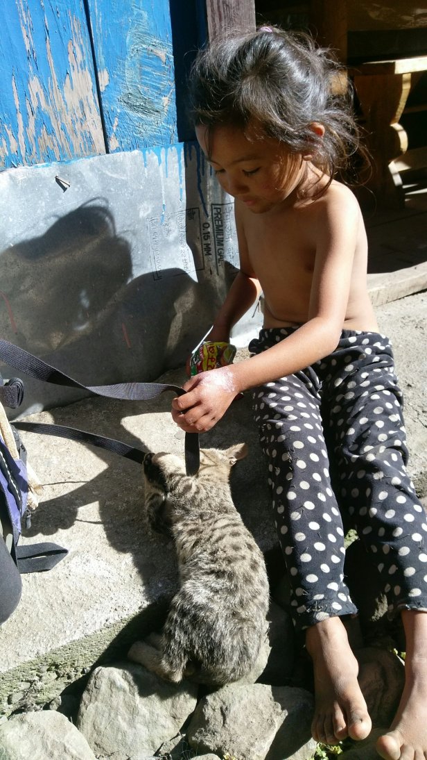 Lama Sherap, a most gentle and interesting man. He has traveled and taught internationally, including having Pena Chodron as a student! We had a lovely time learning about him.This was my first friend. We bonded over the cat. I can speak about her level of Nepali. Actually she taught me some words! She is fearless and covered in scrapes from “the kitty”.
