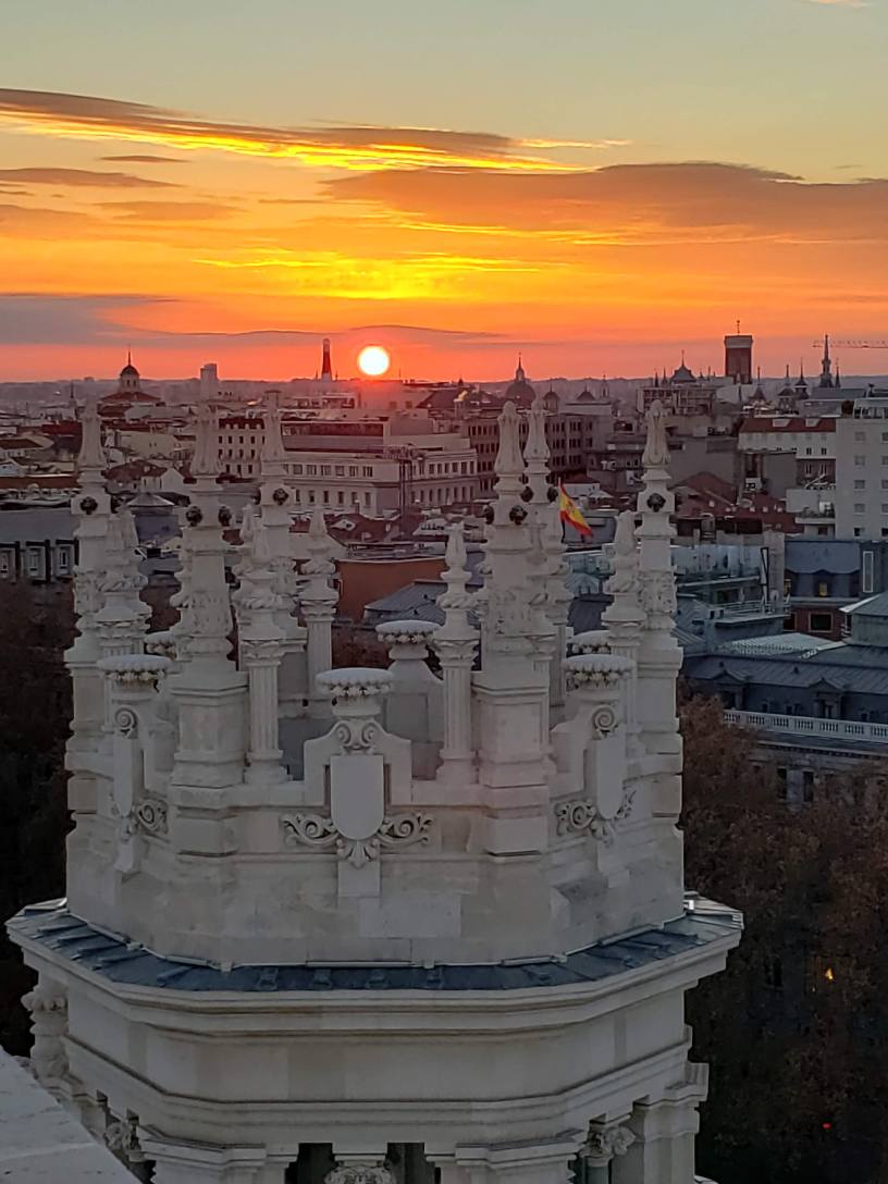 We are here! It’s been 3 days of winding our way through city streets, chasing holiday lights at night, eating the “menu del dia” as our big mid day meal and soaking in the charm of quaint, narrow, streets. Spain is a delight to the senses; well dressed women, the sounds of spanish (and other languages) a soothing melody, warm sun that heats your skin scaring off the chill of 50 degee days. Store fronts dripping with chocolates, cakes and cheese wheels, the clanking of wine glasses as people celebrate the evening with tapas and drinks. Holiday cheer in the streets: children, teens, couples, elders, babystrollers, families, youth, tourists… the streets are PACKED from 5:30 to 9:30 as if waking early the next day is not a necessity. We are finding joy sliding through the city and letting it breathe all over us. (OK, maybe not the best image in the time of covid) How about breathe life into us. Mike and I are still in awe of being here.