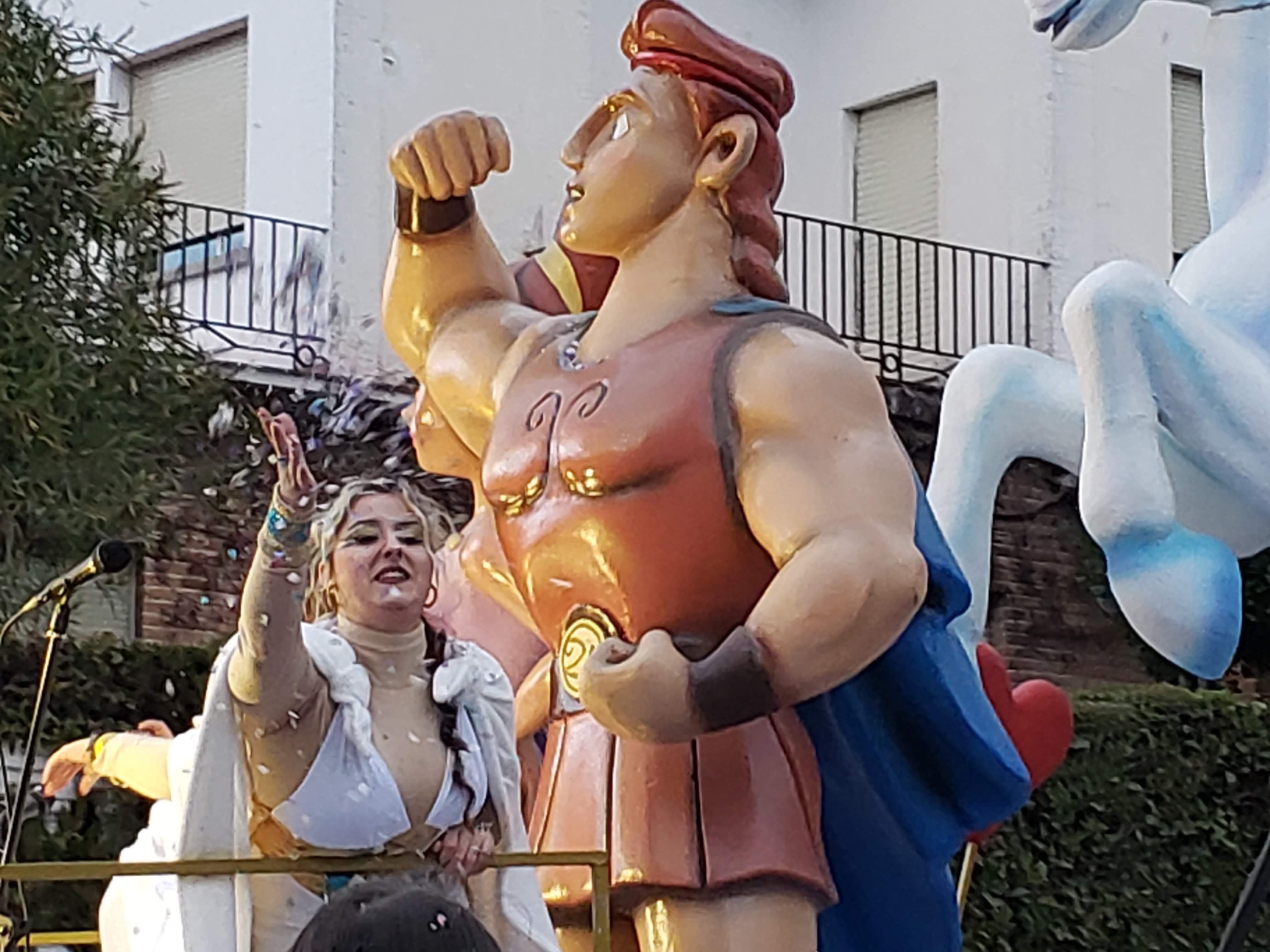 This is a parade for everyone but particularly kids. All of the floats throw candy and confetti as they roll by, and I mean bucket loads of candy. Kids (and grownups alike) are scrambling around picking candy off the ground, stuffing thier bags and pockets full! It’s a blast. Disney, Marvel and comic characters have thier place in the parade but the grand finale are the Kings.