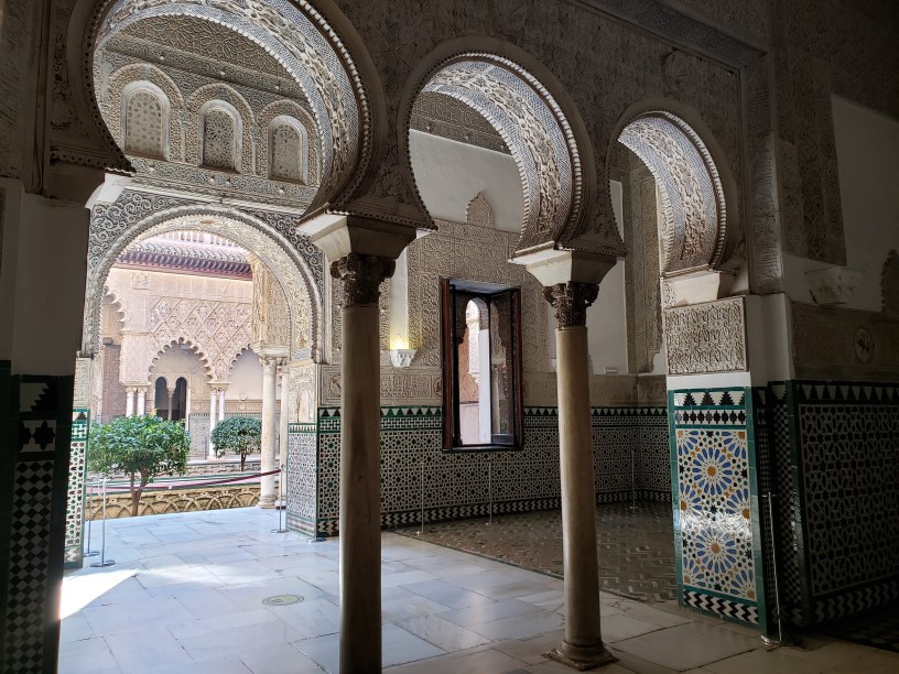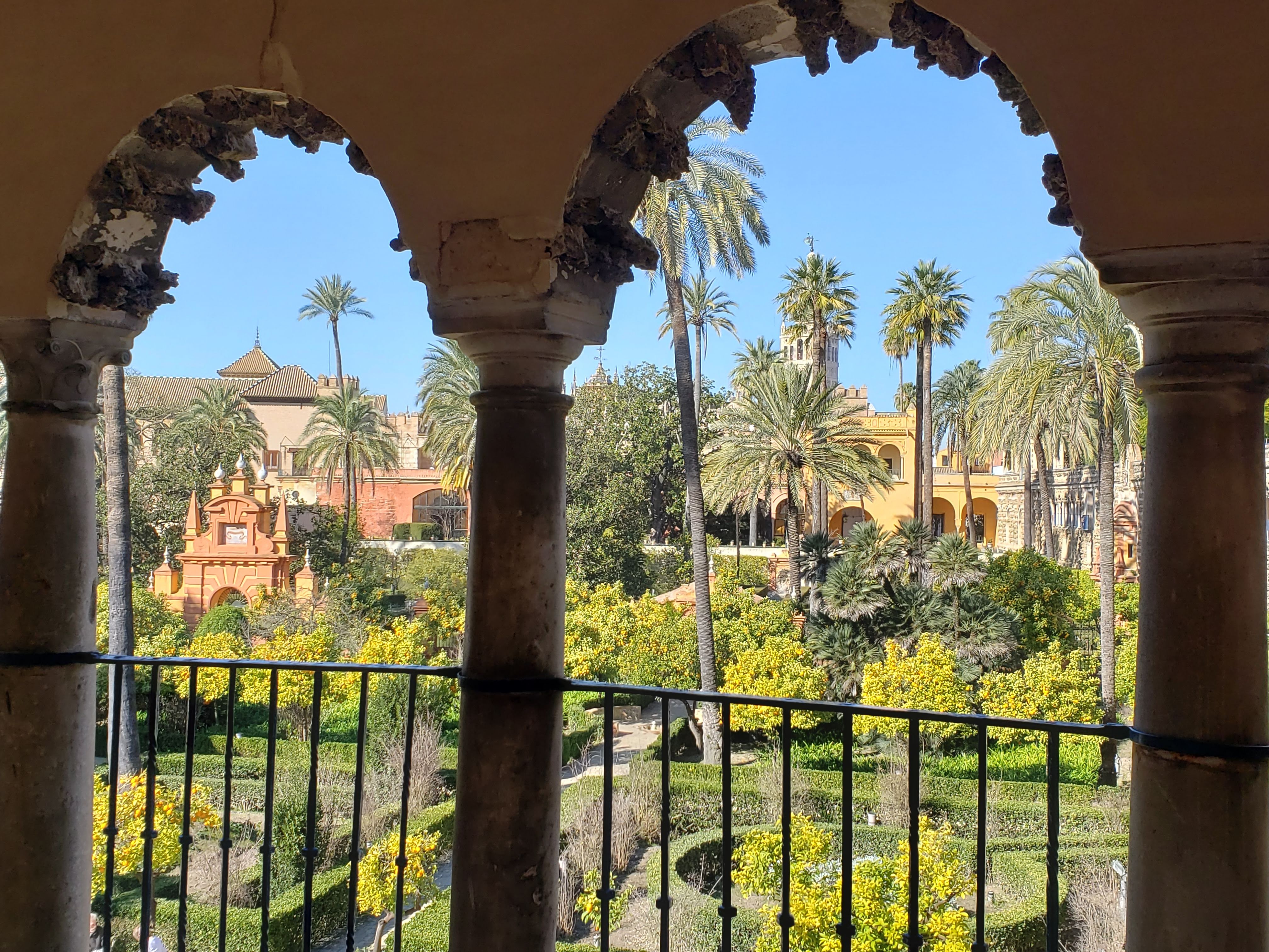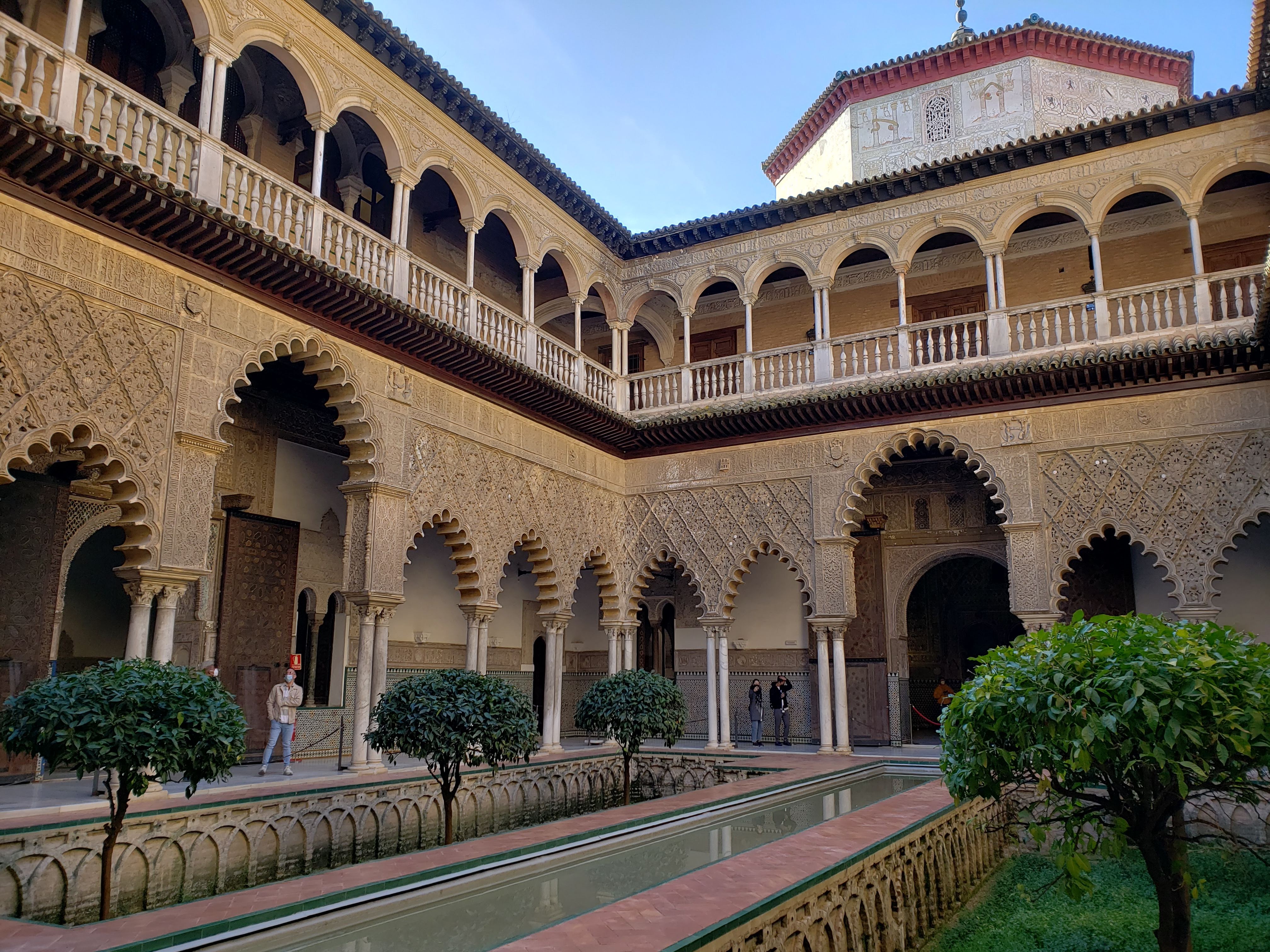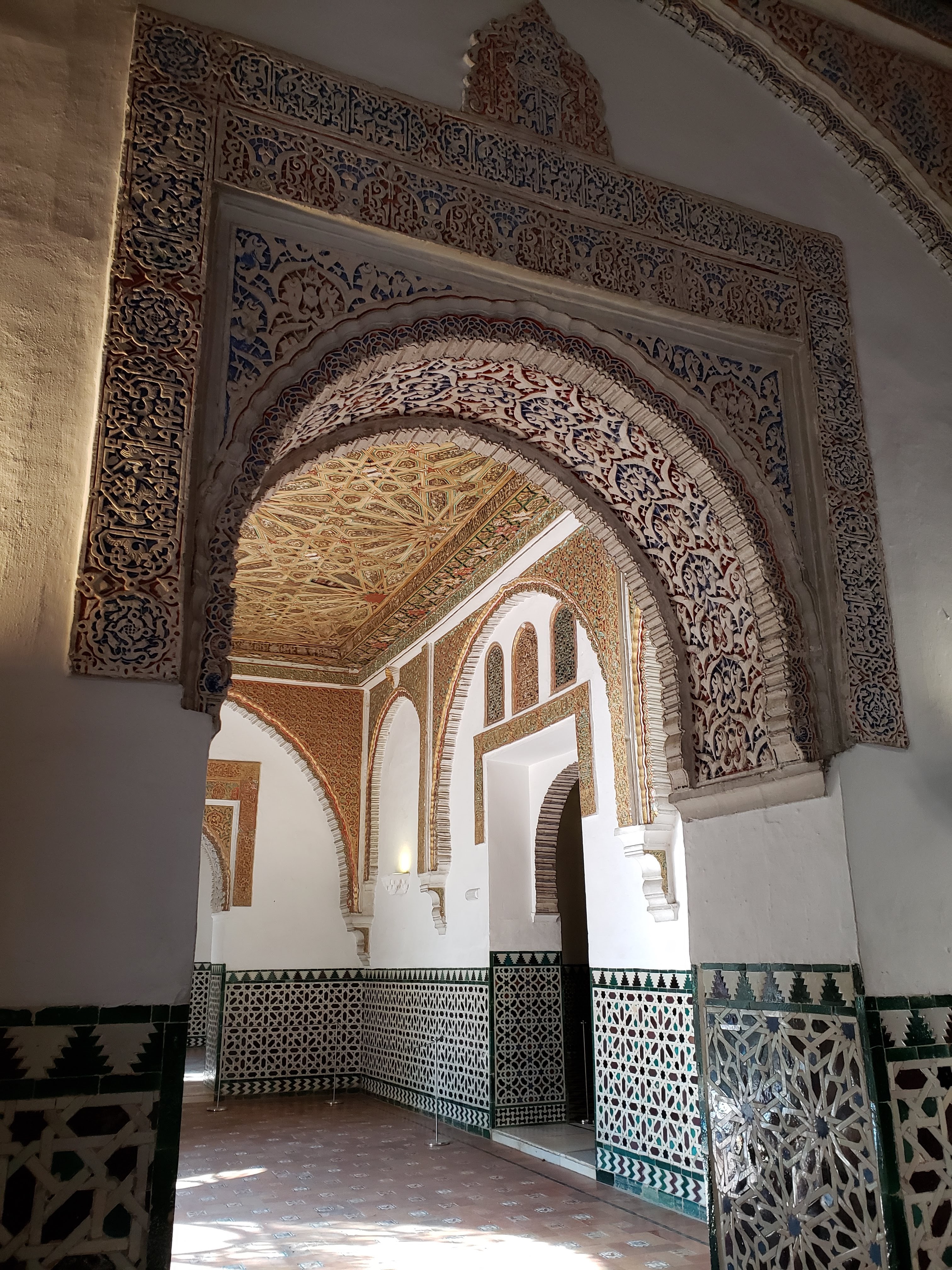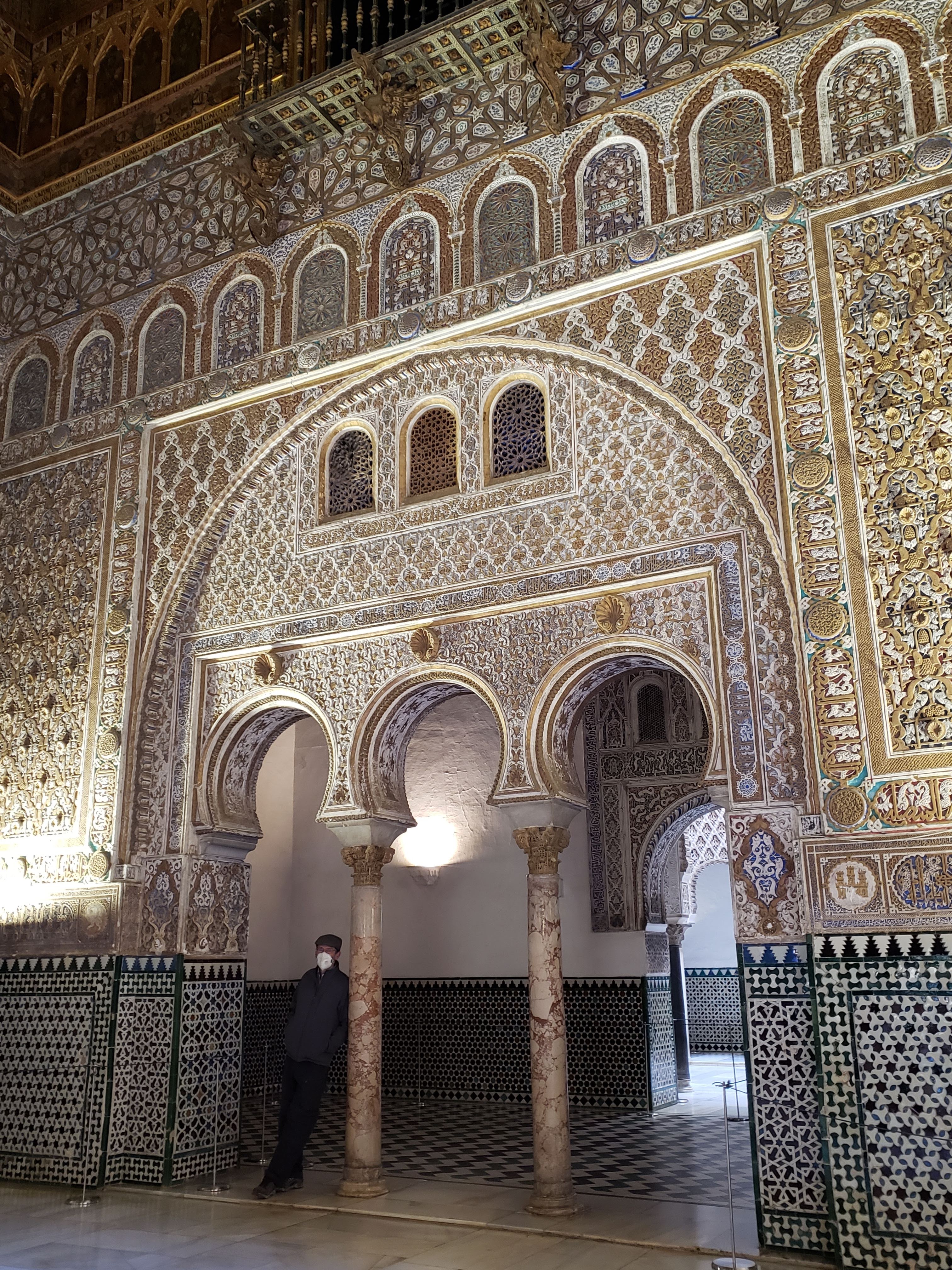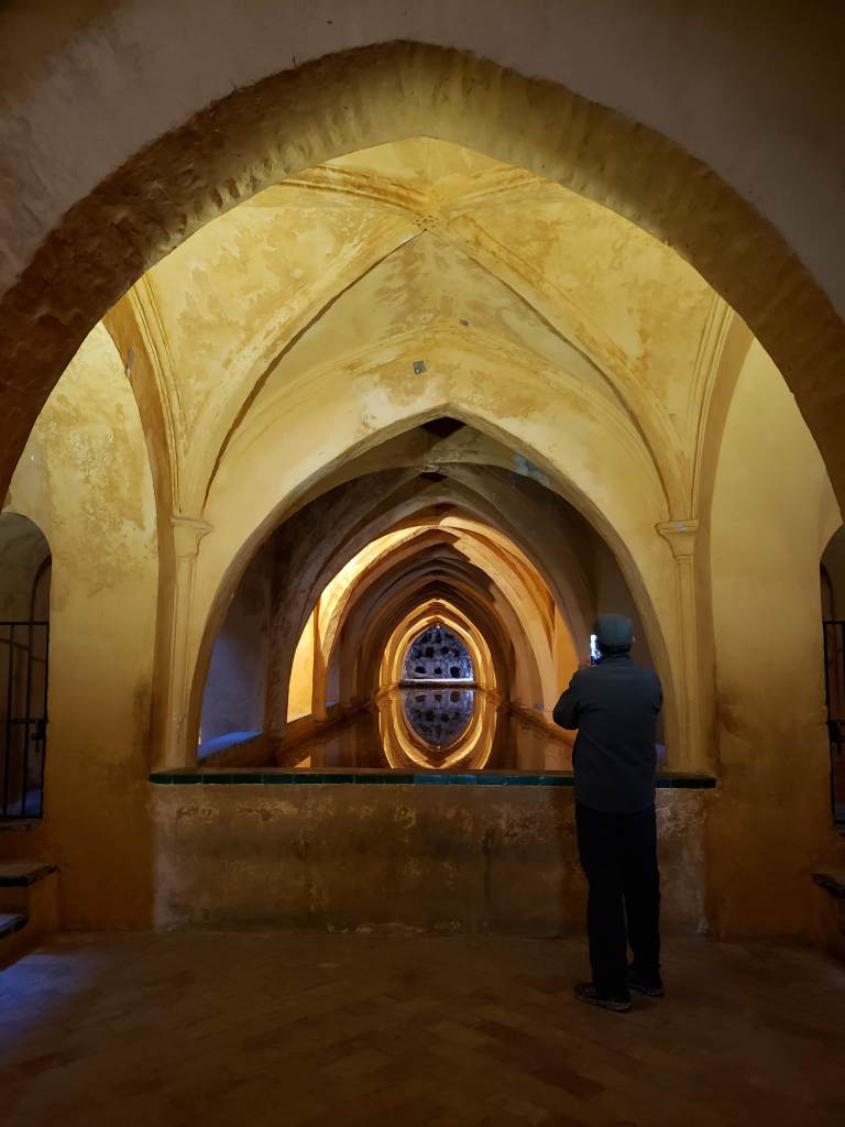 There is deep history reflected in the varied architecture of Seville. Muslims controlled the better part of Andalucia for 800 years. They brought with them Moorish architecture; the characteristic rounded archways along with geometric and arabesque designs carved of wood, stucco and tile. The Spanish christians would take control in the 13th century. I’m learning that part of conquering is to mark the territory with your religion and the buildings where one worships. This means you supplant their architecture with yours, which has created incredible displays of Gothic and Islamic architecture butting up against each other, or built over each other, depending who had control at the time. This is the case with the Real Alcazar, or Royal Palace, which was built for a Christian King on top of a Muslim Alcazar.