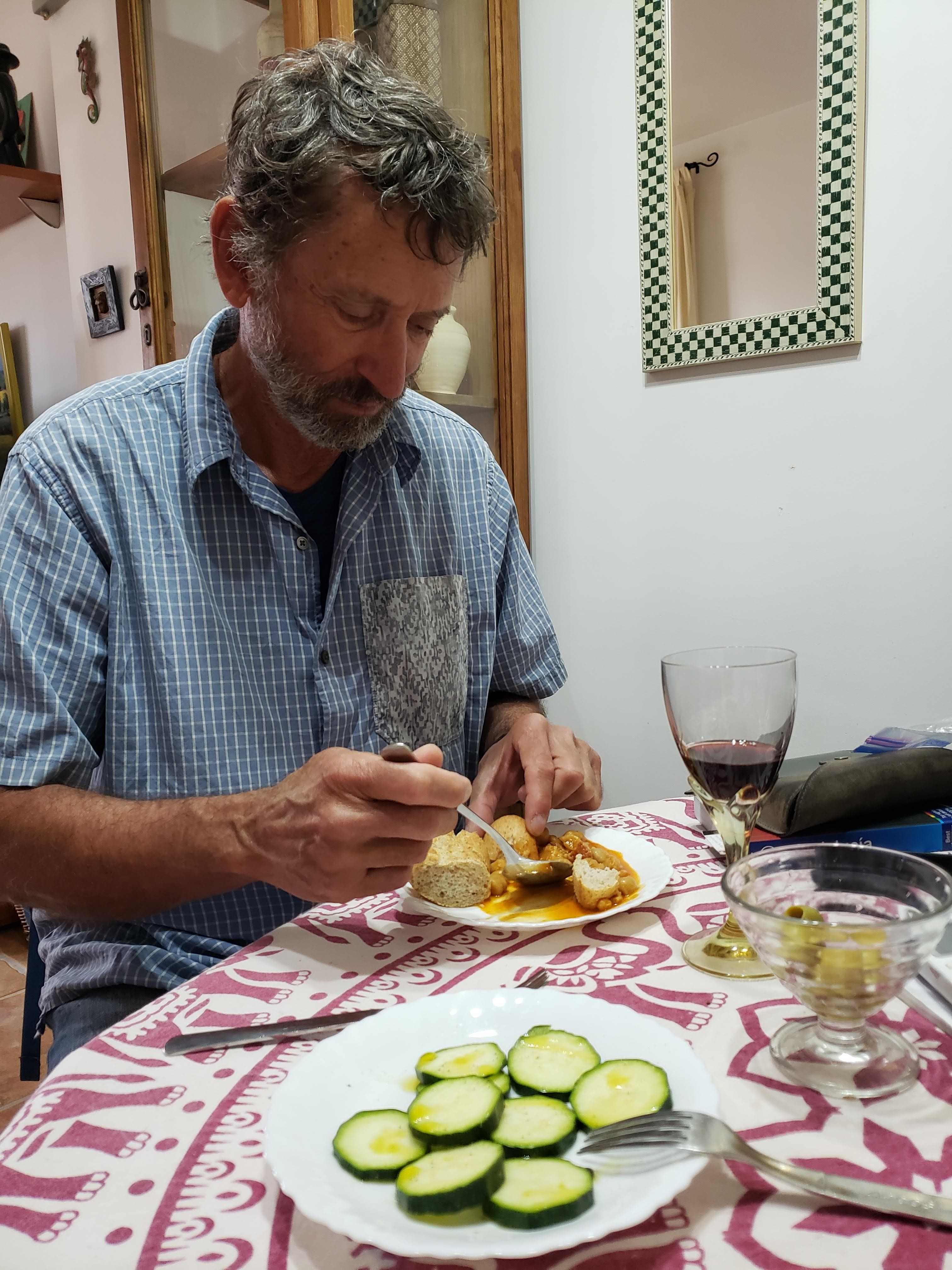We have enjoyed cooking and embraced the “spanish style”. Everything tastes great when enough good olive oil is drizzled on it accompanied by salt and pepper! This meal was a step out to try callos y garbanzos, which is tripe (or cow stomach lining) and garbanzo beans. While it may sound tough if you aren’t used to the idea of eating all of the animal, it’s quite good. It certainly is in line with my environmental values. Meat is an expensive commodity to raise, let’s make good use of the entire animal! I’m curious to see if I embrace this philosophy when I settle back into cooking at home. Dinner guests be warned!